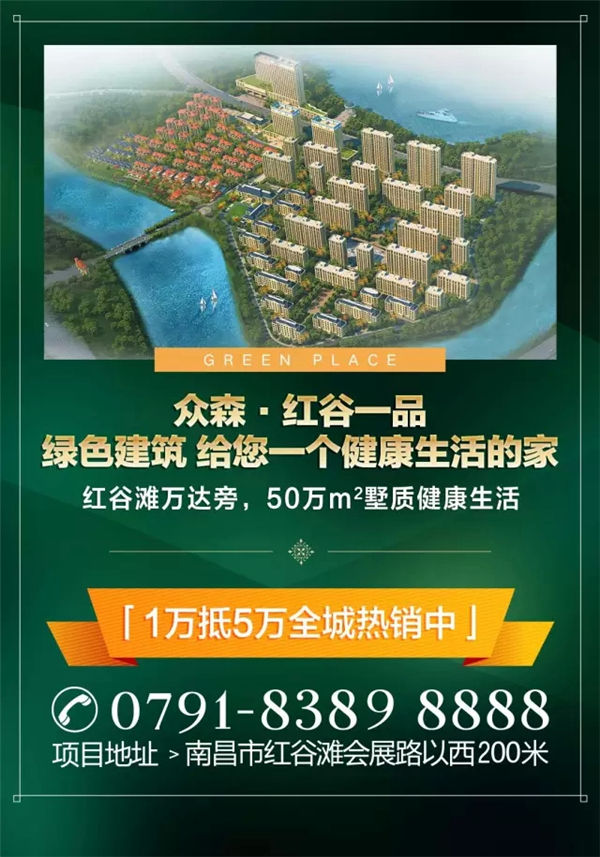 众森·红谷一品,绿色建筑,给您一个健康生活的家!红谷滩中心生活圈,50万㎡墅质健康生活。无需安装空调,恒温恒氧恒湿恒静,常年室温20-26℃ (±2℃ )四季如春。96~125㎡湖景小高层,8800元/㎡起,1万抵5万全城热销中。